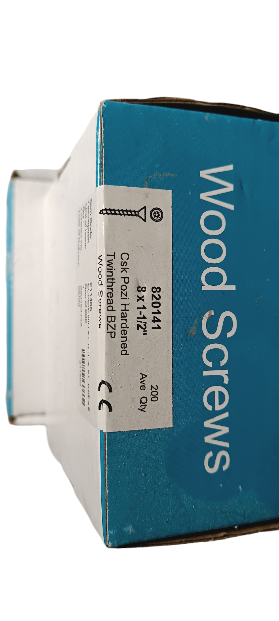 No.8 x 1.1/2 inch Countersunk Pozi Wood Screw Pk 200 Zinc plated pozi drive countersunk woodscrews, sold in boxes of 200. Suitable for general applications into softwoods and various hardwoods. With the exception of major diameters and threads, these screws are designed and manufactured to BS1210 standards. The single starting thread has a 25 degree sharp point for quick starting and thread acceptance. The parallel shank has 60 degree twin-threads and makes for a fast insertion speed and good pull out resistance. Made from C10-18 steel and plated in zinc to between 3-5 microns. The surface is hardened to prevent torque shearing and the softer core gives improved ductility.